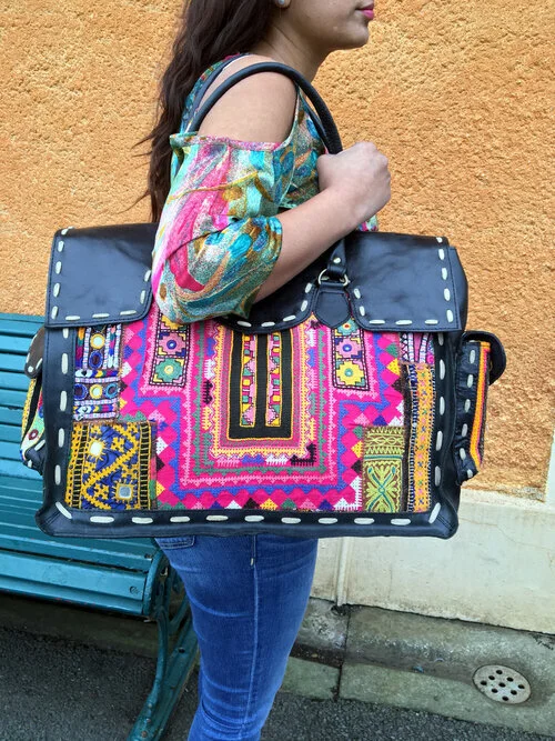 The Shimla bag range consist of upcycled leather travel or weekend bags, lovingly hand crafted with unique antique and vintage emboridery patchwork and fully lined in cotton canvas £165 with free UK delivery. Each bag is a one-off, just like mum. See the range here including the other bag styles available.