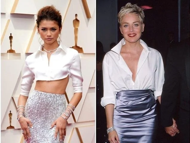 White shirts are back, however, were they ever gone? The new fuss is mostly over Hollywood star, Zendaya wearing a crisp white shirt as part of her Oscars night outfit. Her sharp choice for celebrities’ most glamorous night out was noted as was the pioneer, Sharon Stone who was here first and clearly the inspiration behind the latest iteration.