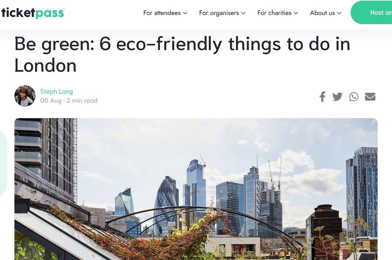 Pop London was selected by Ticket Pass as one of the six best sustainable activities in London. Ticketpass provides an ethical alternative to the regular ticketing industry with 50% of Ticketpass booking fees going to charities working to make a positive impact on the planet.